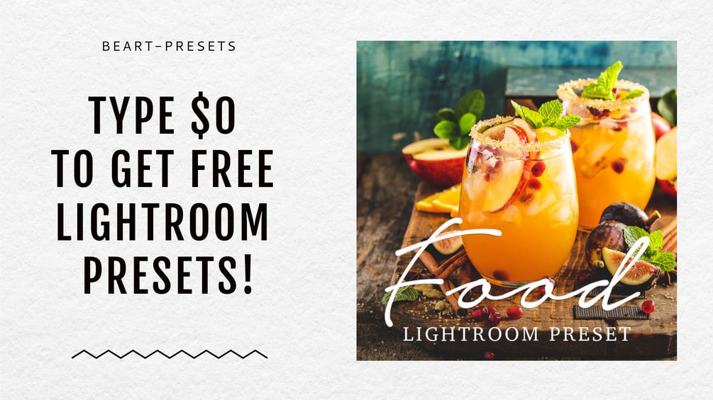 TYPE $0 TO GET FREE LIGHTROOM PRESETS!